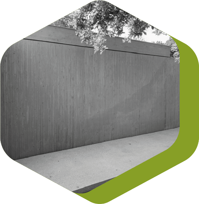 - Architectonisch beton: Gevels, dragende wanden en kolommen in markante kleuren die het ontwerp versterken.