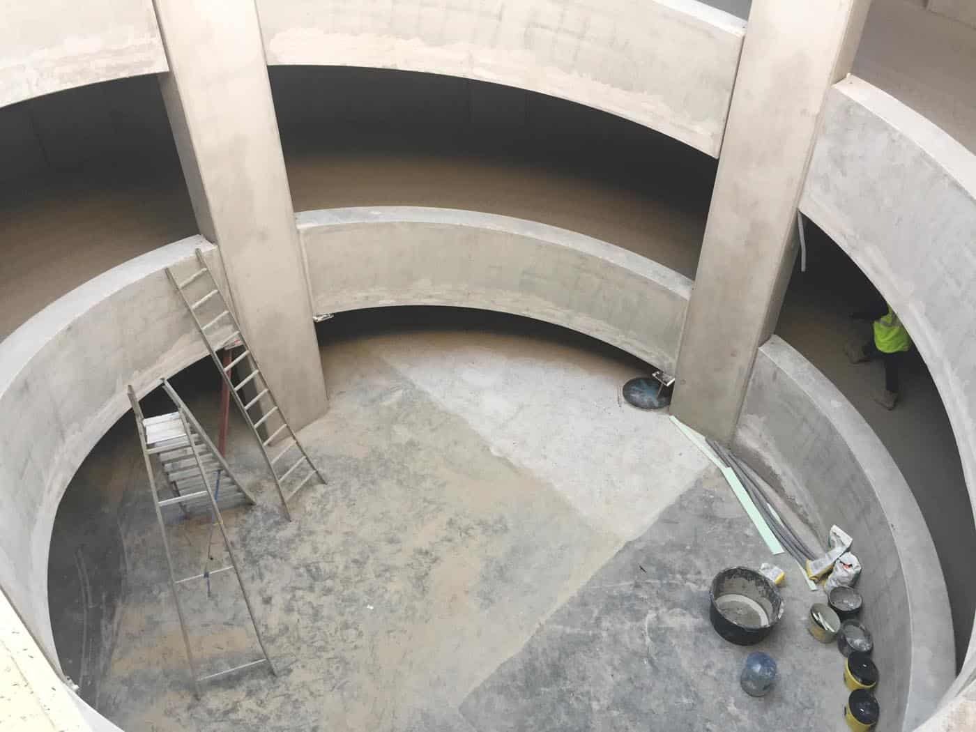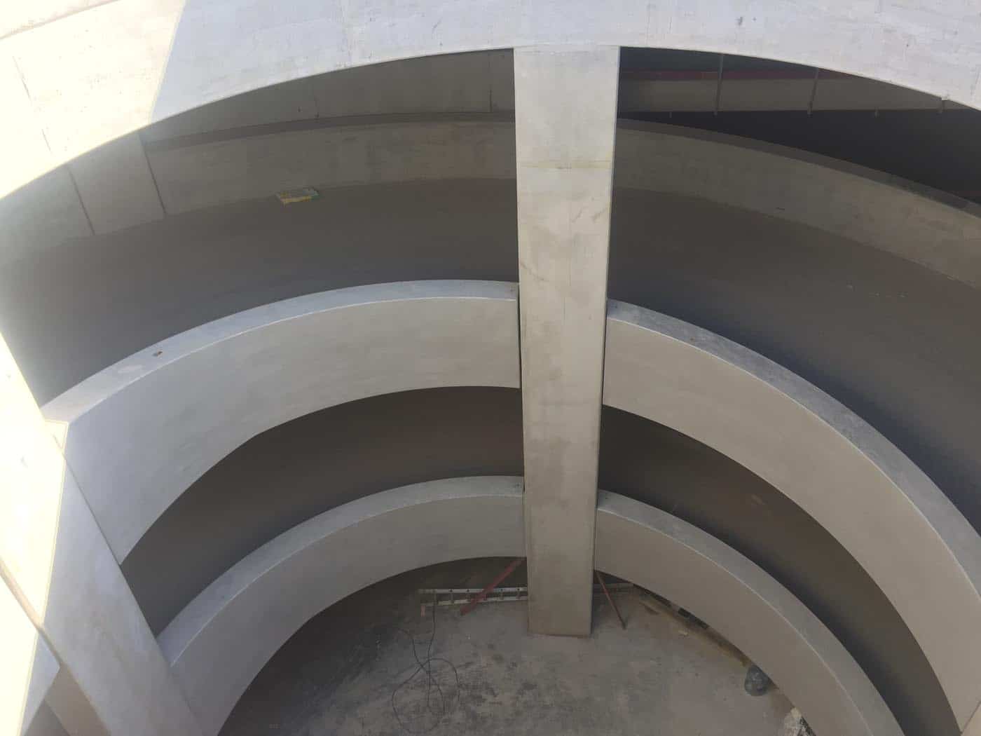 Voor de nieuwe Spoorbypass & Tangent in Mechelen namen we het volledig esthetisch bijwerken van de helikoïdale betonstructuren in de ondergrondse parking voor onze rekening. De ronde vormen en zichtbare betonoppervlakken vragen om een zorgvuldige afwerking, zodat niet alleen de duurzaamheid, maar ook de uitstraling gegarandeerd is. Dankzij onze ingrepen oogt de parking strak en verzorgd, en sluit het eindresultaat perfect aan bij de hoge eisen van dit grootschalige infrastructuurproject.