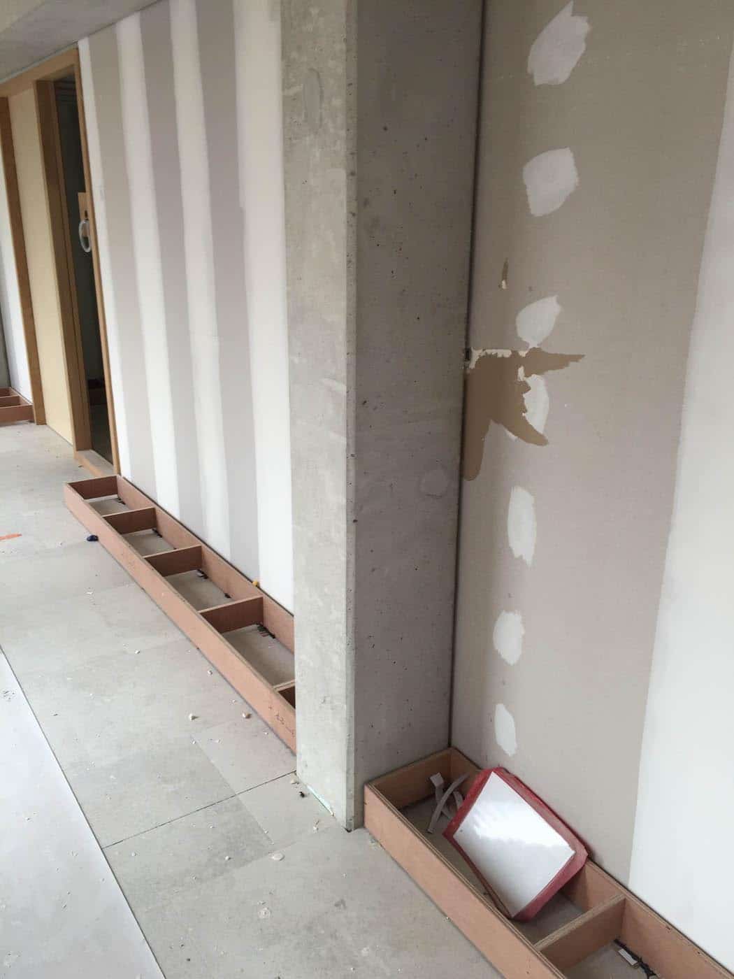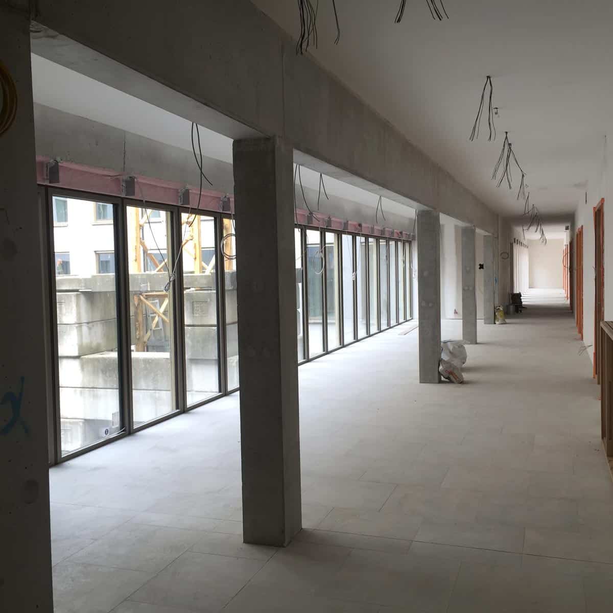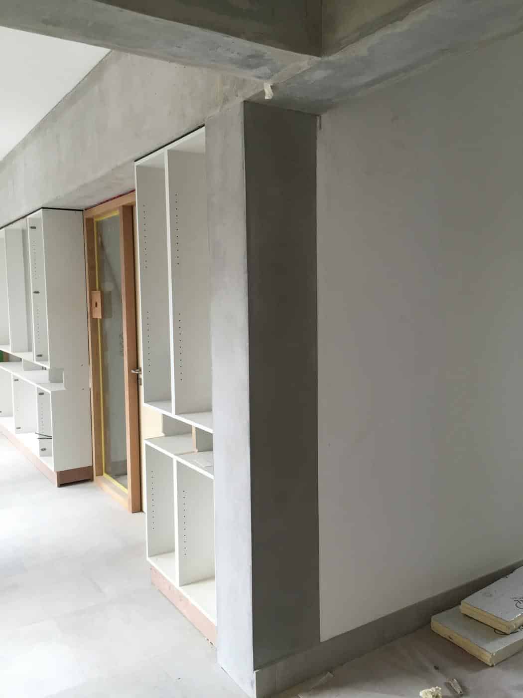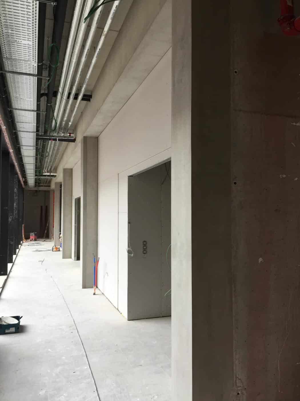 In WZC Vincentius in Kortrijk zorgden we voor een volledige esthetische afwerking van de betonstructuur. Hierbij werden de vellingkanten zorgvuldig weggewerkt en alle oppervlakken egaal en strak nabewerkt. Het resultaat is een nette en uniforme uitstraling die perfect past binnen de moderne architectuur van het gebouw.